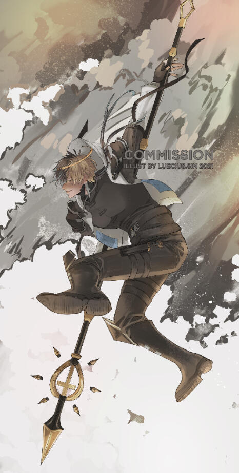 A special gacha-type commission where the composition and mood is entirely up to the artist's discretion. It is a cleaned sketch, dynamic full-body, colored piece with a non-complicated background.